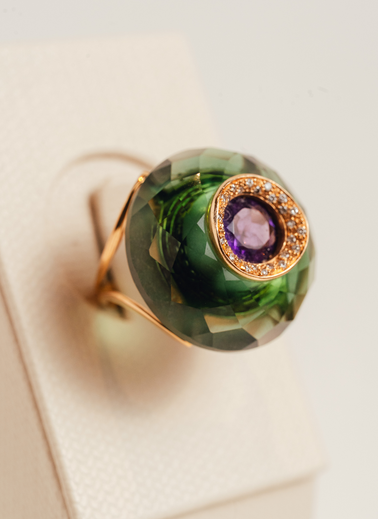 Anillo Dream Big Cuarzo Verdoso y Amatista