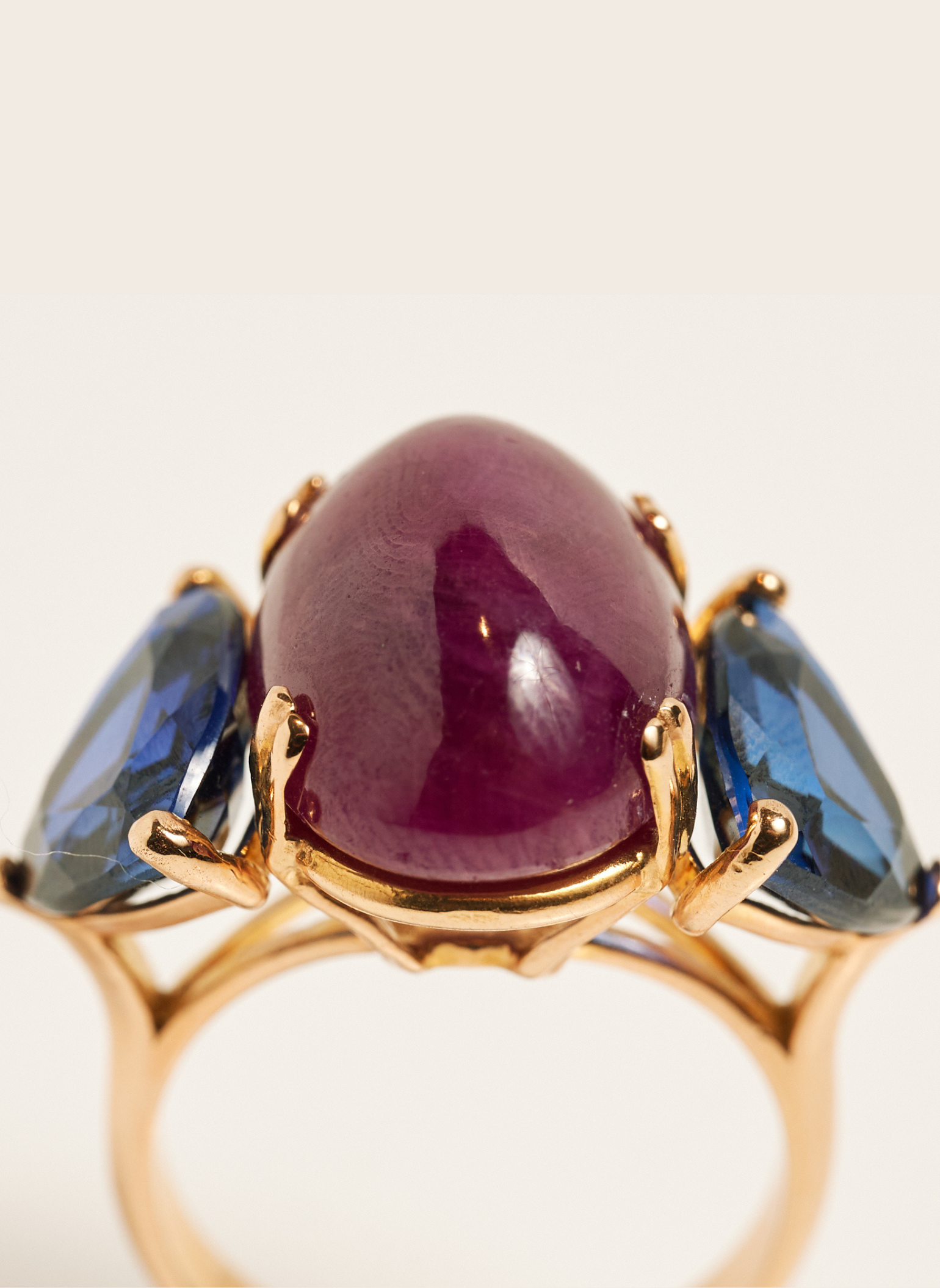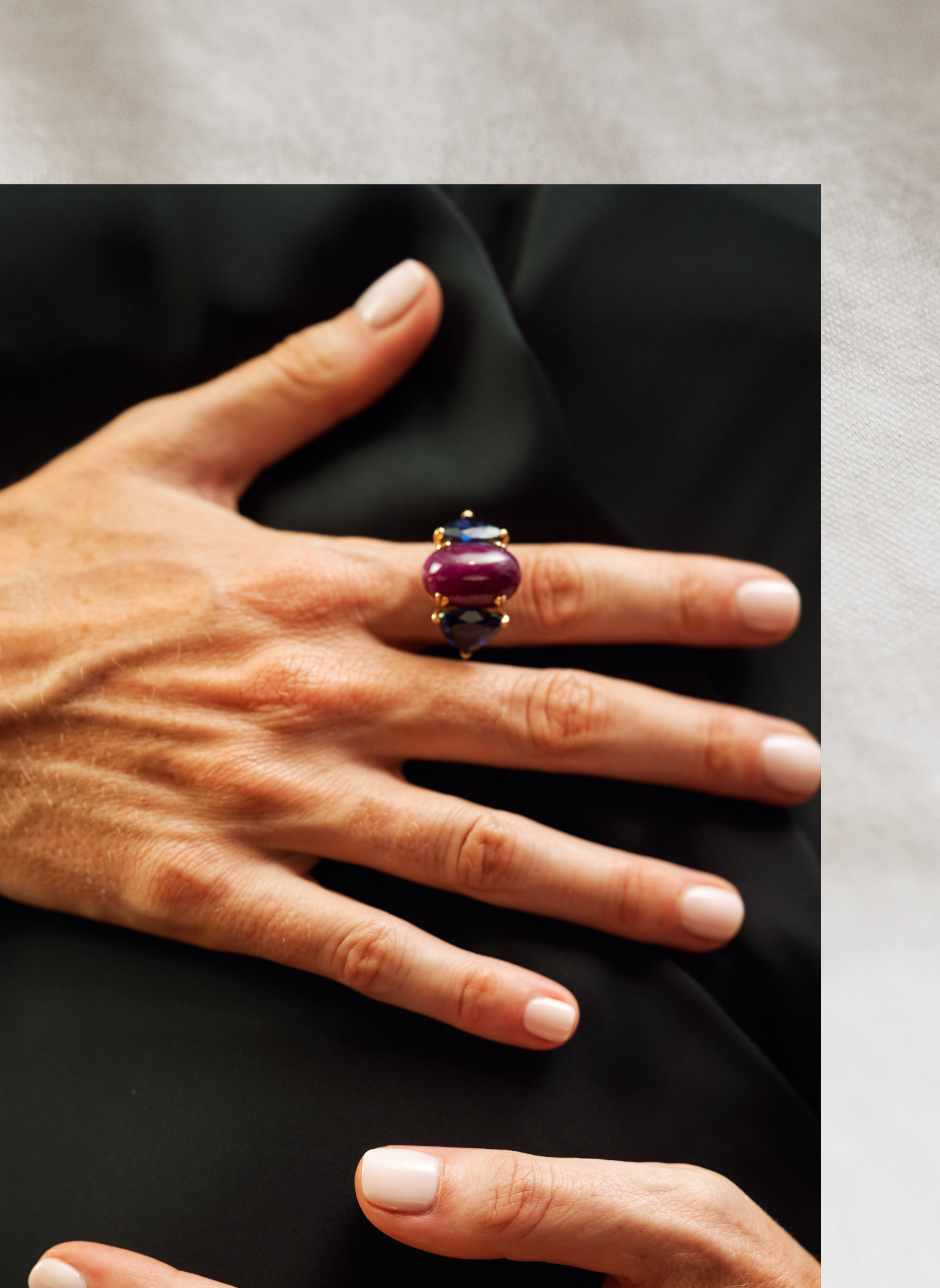 Anillo Le Gemme Cinquillo Topacio Azul y Amatistas