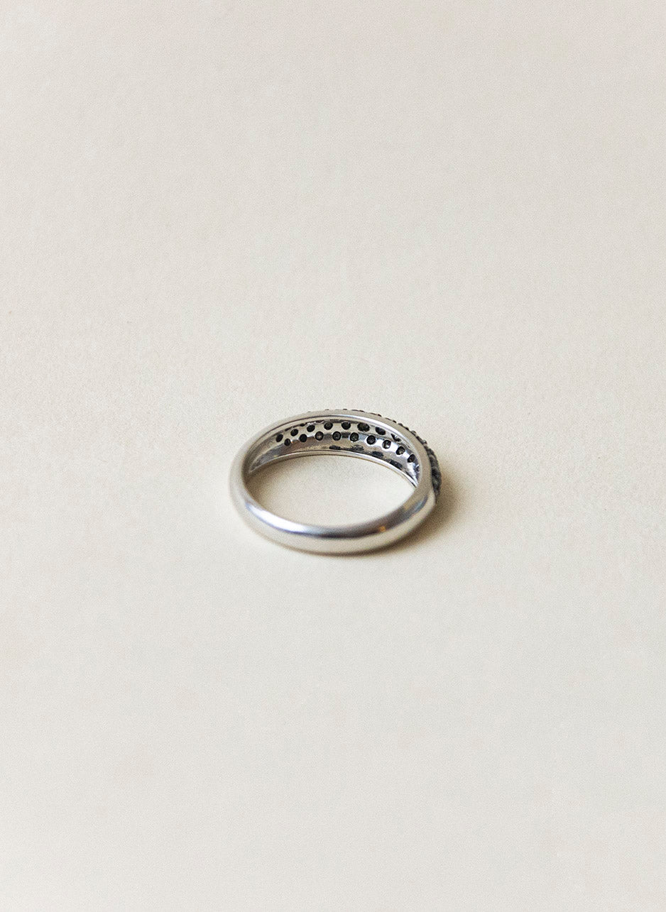 Anillo Brillante Talla Princesa y Diamantes Negros