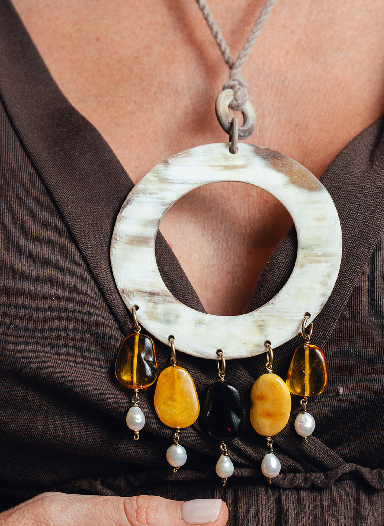 Materiales: Asta, Ambar, Perlas y Cuarzo