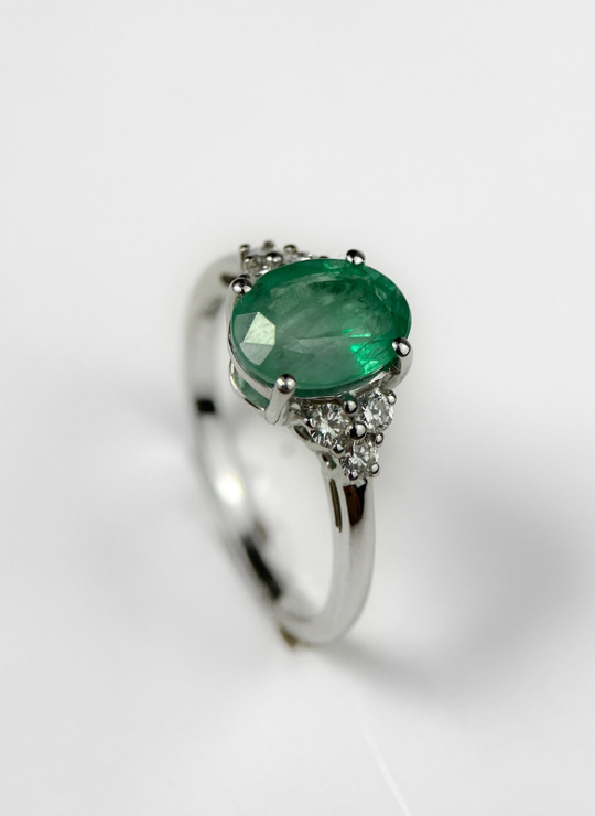 Anillo Esmeralda Talla Oval y Diamantes Oro Blanco