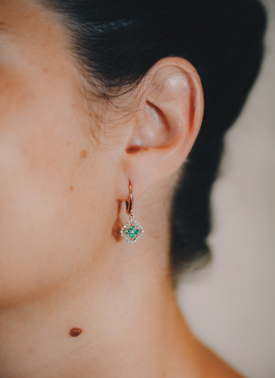 Pendientes Roseta Orla en Esmeralda Pavé con Diamantes