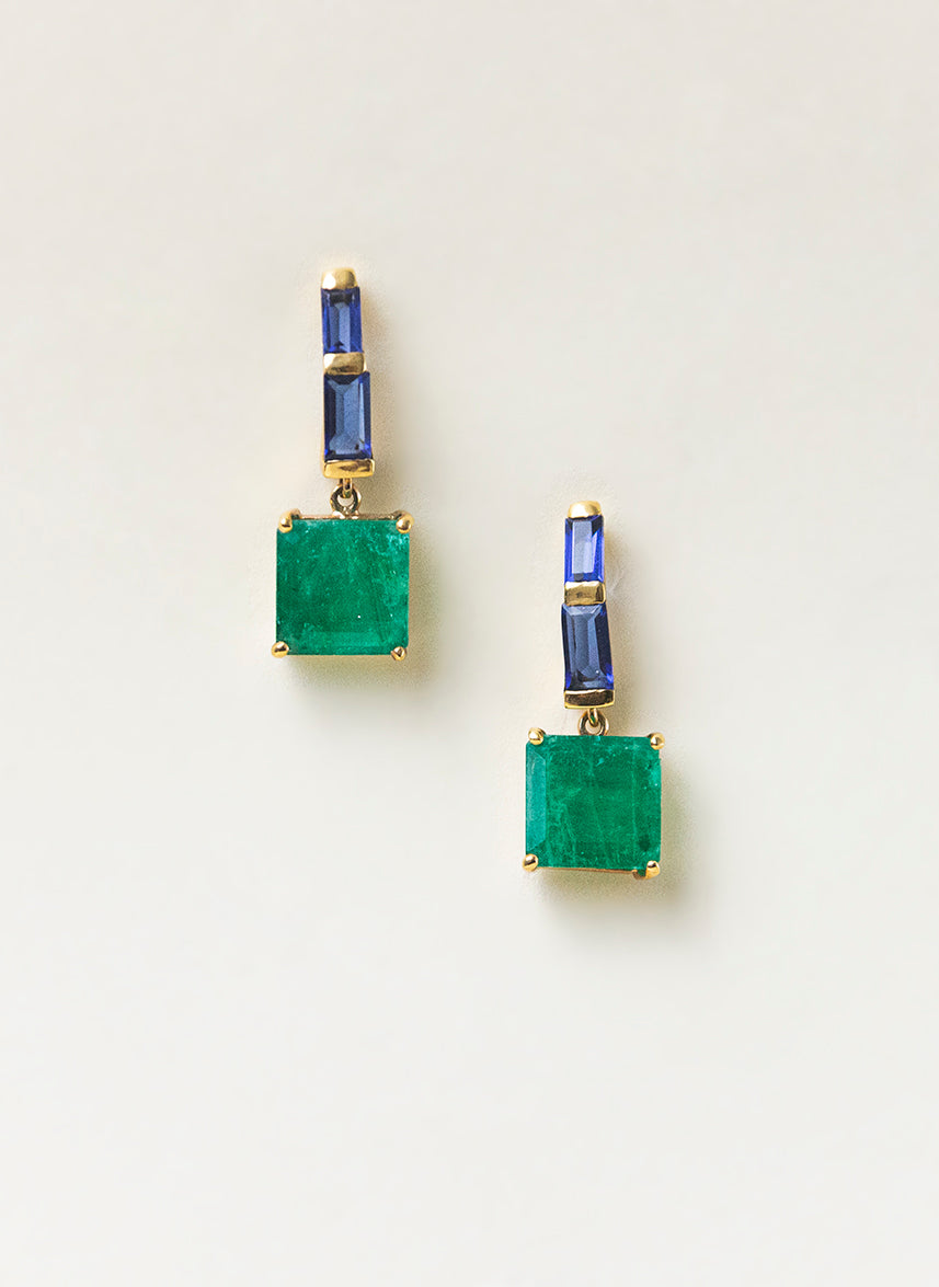 Pendientes Le Gemme Esmeraldas Hidrolizadas y Zafiro
