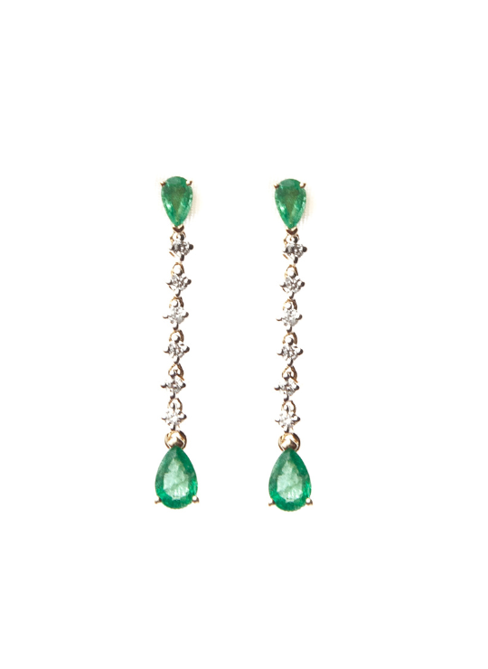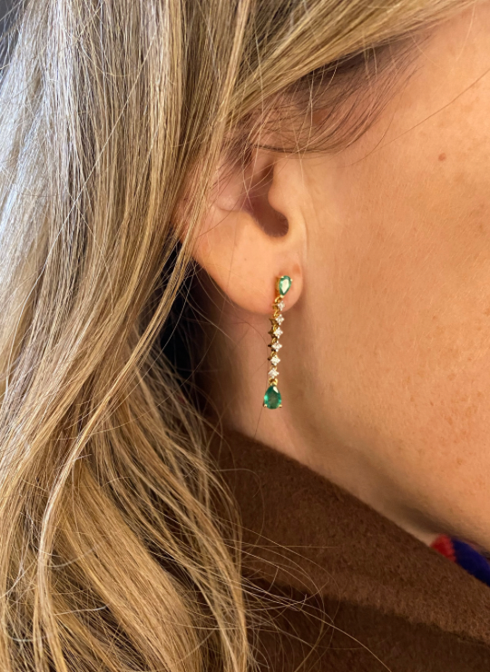 Pendientes Hilera Diamantes y Esmeraldas Talla Princesa