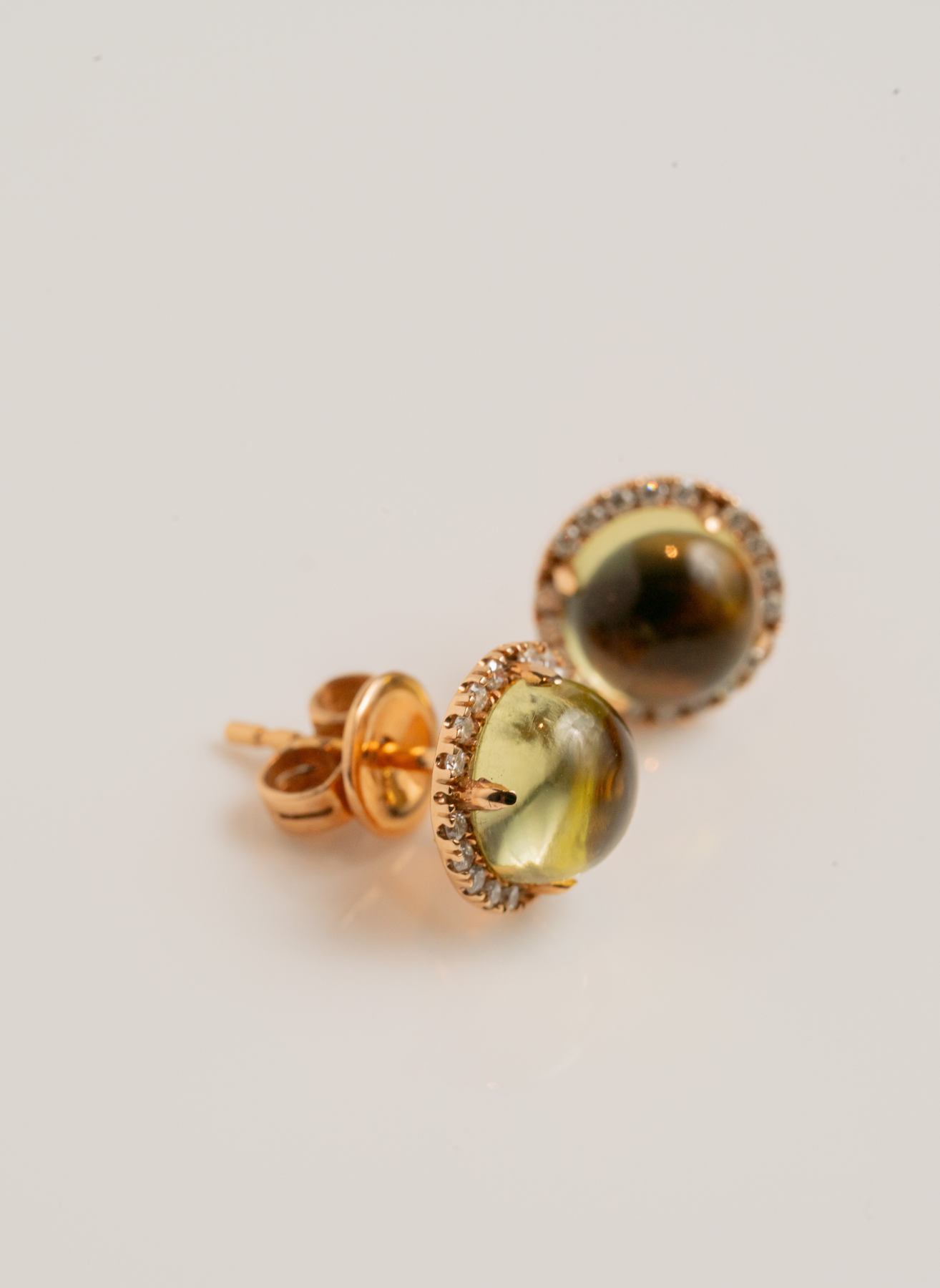 Materiales: Oro Rosa de 18 Quilates, Cuarzo Limon y 36 Brillantes (Total 0.18 Quilates)