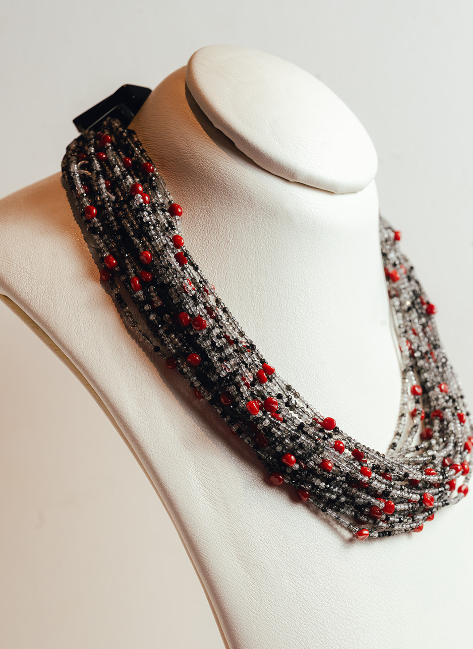 Choker Chevalier 28 vueltas Coral y Cuarzos