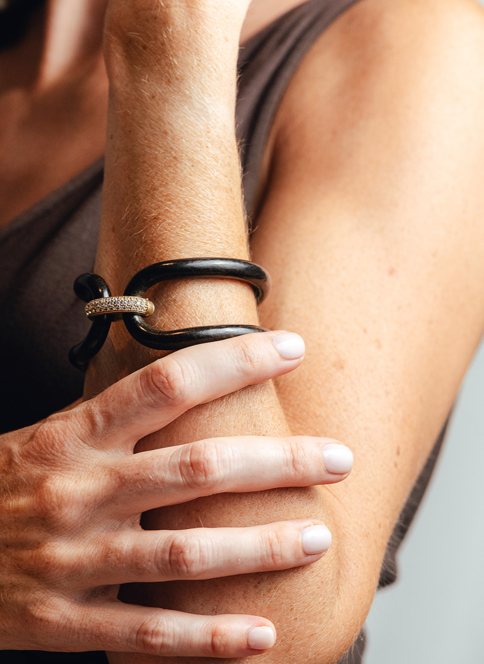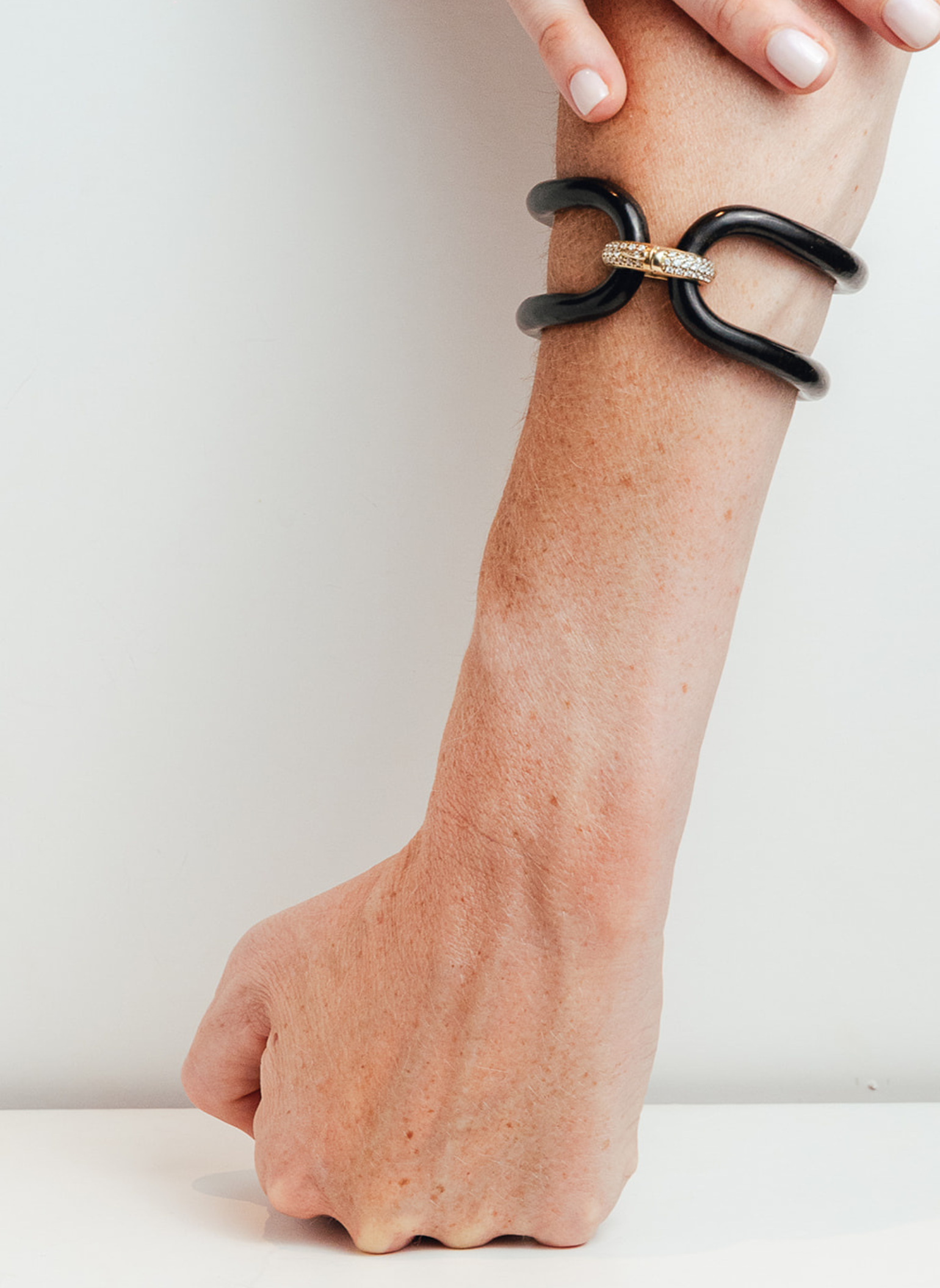 Pulsera Rivière Brillantes Negros y Parejas de Brillantes Blancos