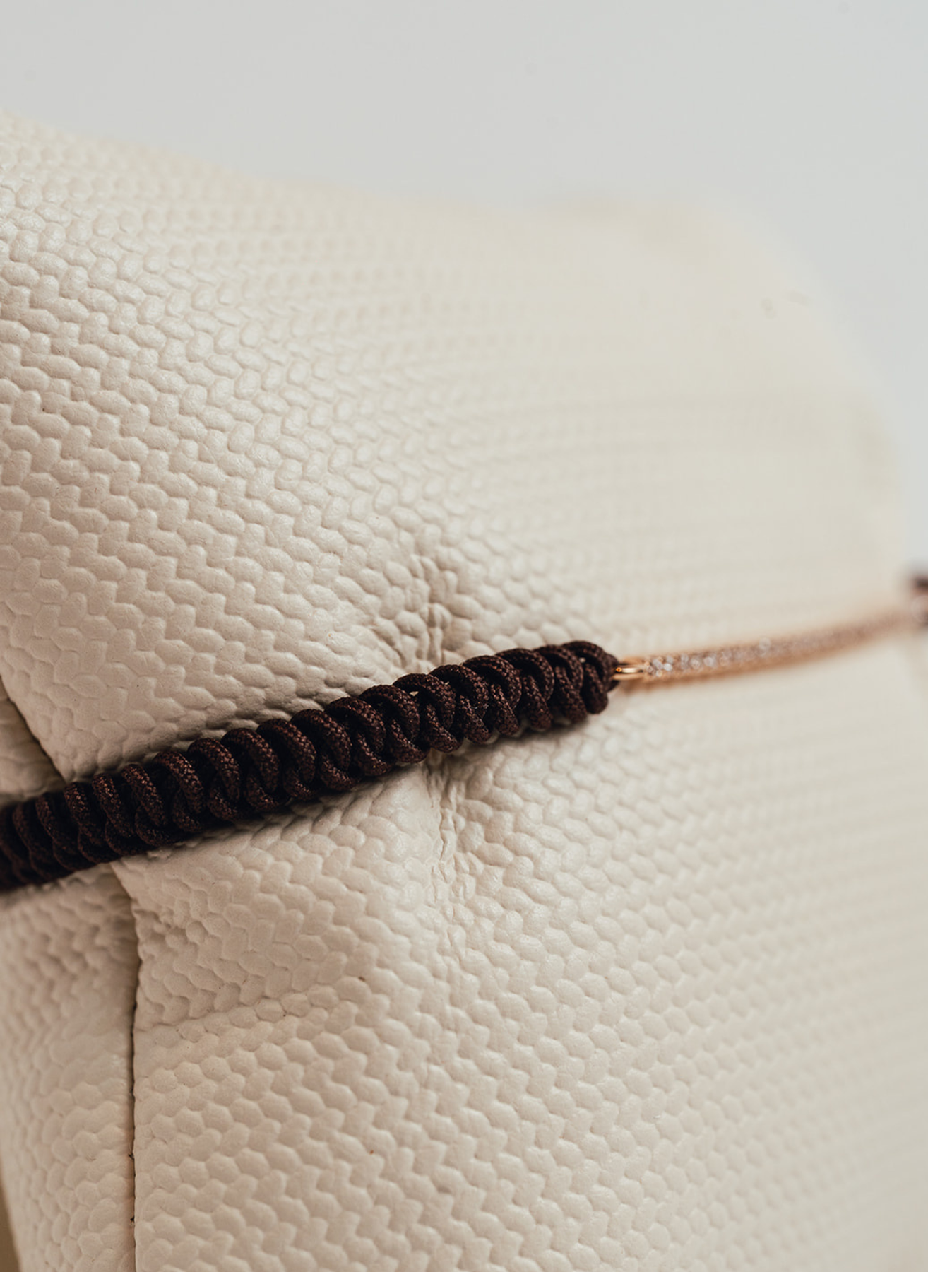 Material: Oro Rosa de 18 Quilates, Macrame Marron y Diamantes Talla Brillante