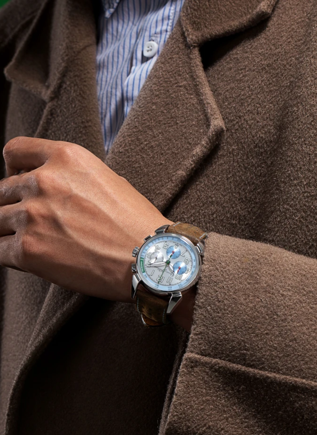 El historiador Nino Farina II sigue a la aclamada primera serie limitada que se agotó en muy poco tiempo. Se trata de un nuevo cronógrafo, limitado a 158 piezas, inspirado en la histórica carrera y con los colores del icónico Alfa Romeo, pero hecho para un público moderno.