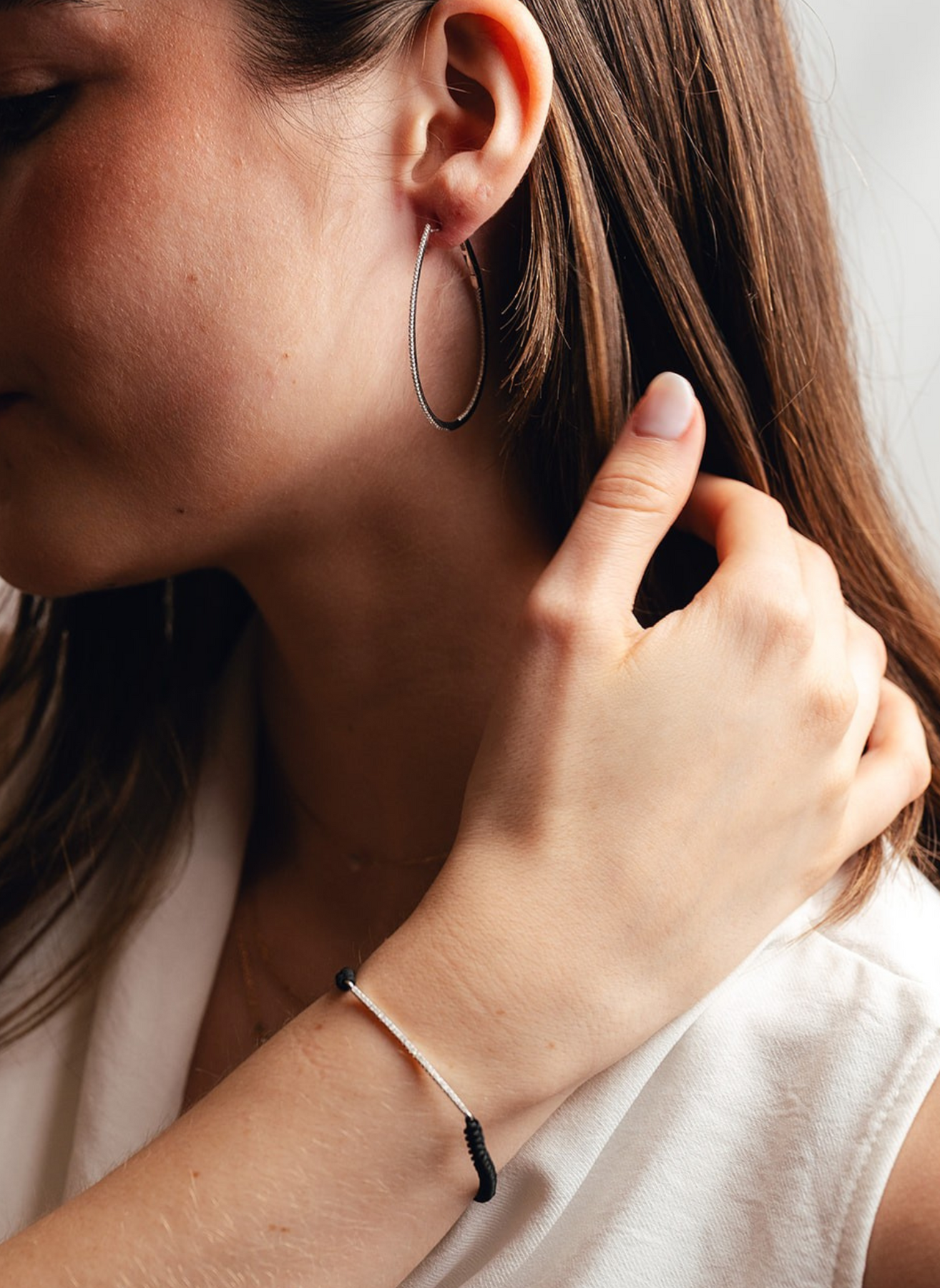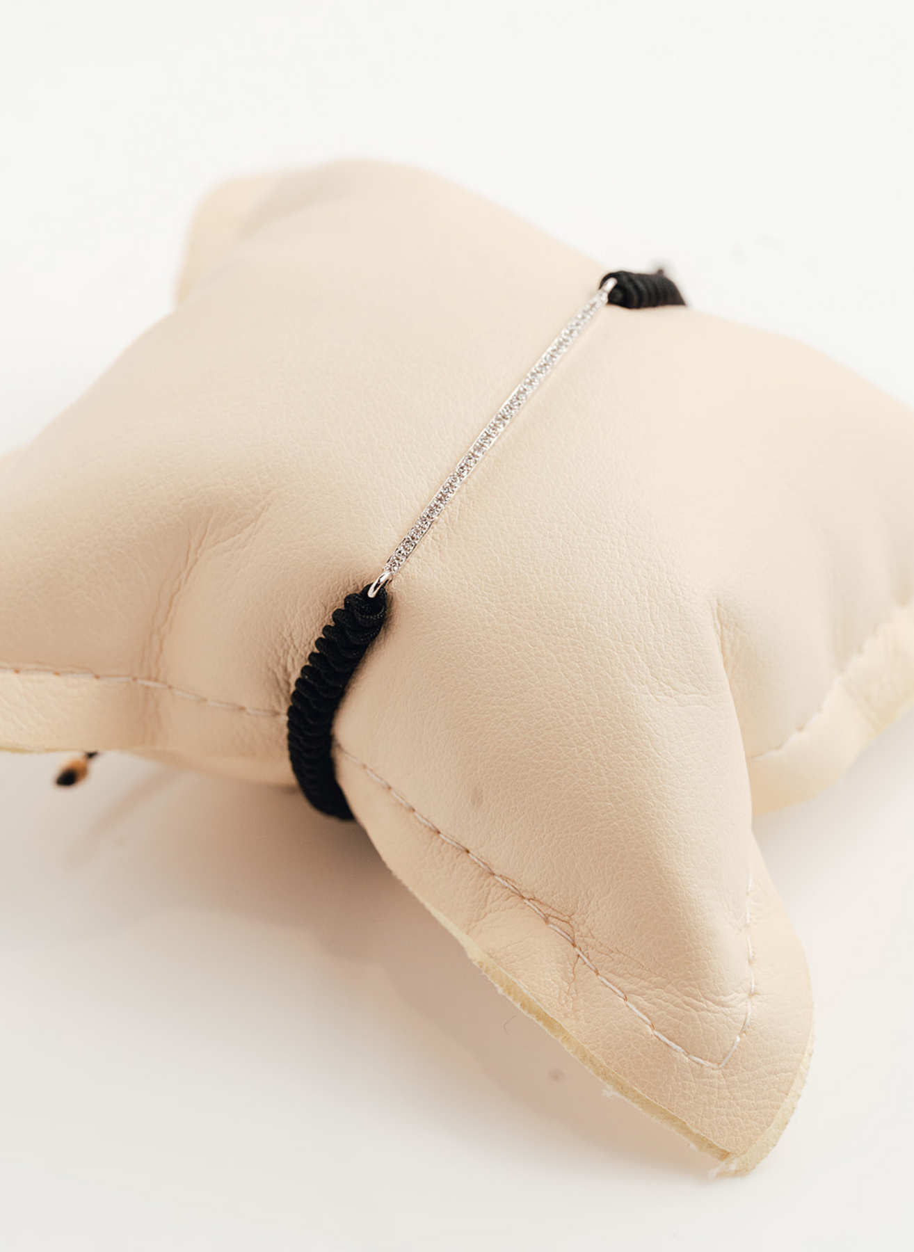 Material: Oro Blanco de 18 Quilates, Macrame Negro y Diamantes Talla Brillante