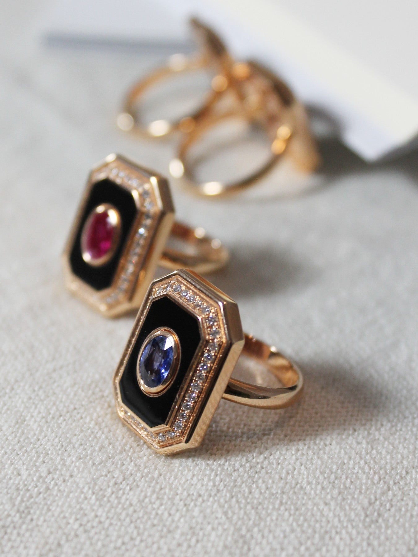 Carré Onix and Ruby Earrings