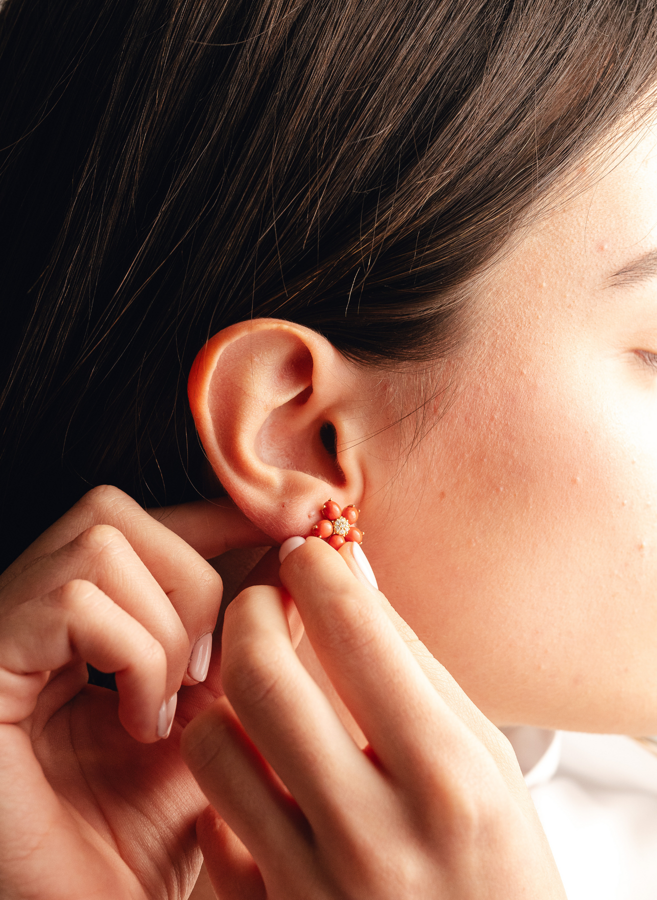 Los artifices de Coral y sus tributos como la principal inspiración para esta colección de joyas únicas con magia marina.Usando el coral como protagonista y combinado con los Diamantes y la terminación en pavé negro, crean una combinación sublime. Estos pendientes se caracterizan por su elegancia y son perfectos para combinar a juego con los anillos o collares para crear una combinación extraordinaria