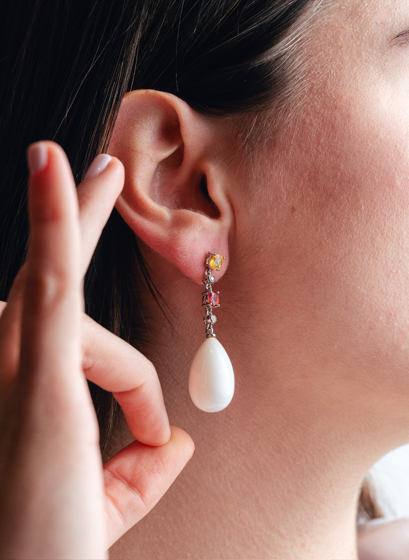 Pendientes Largos Brillantes, Topacios y Cuarzo