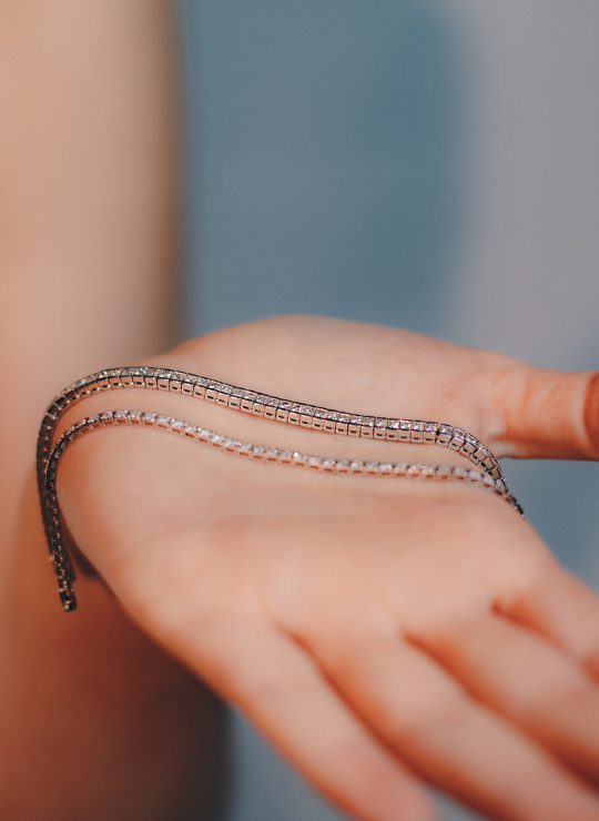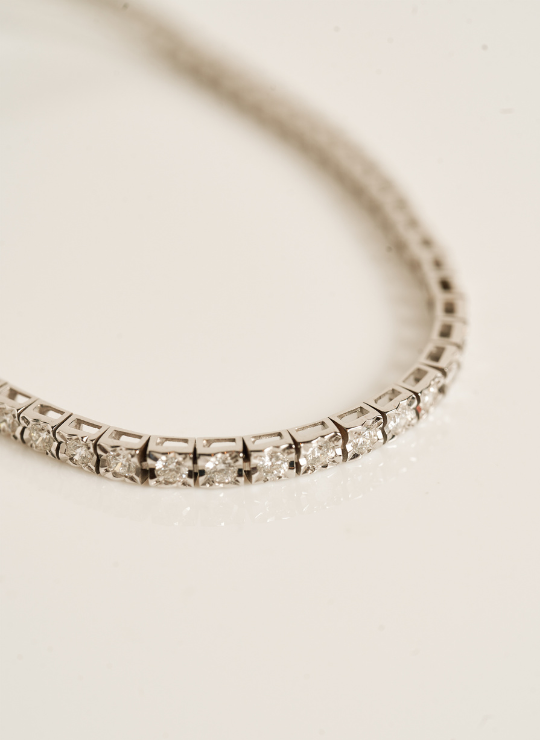 Pulseras Rivière un clásico atemporal para toda la vida. Las pulseras Rivière toman su nombre del término francés río, se encontró una similitud entre el diseño de la pieza y la imagen de la Riviera Francesa por la noche cuando sus luces se ven reflejadas en el río. Una vez unidos los diamantes crean un río de luz y brillo.