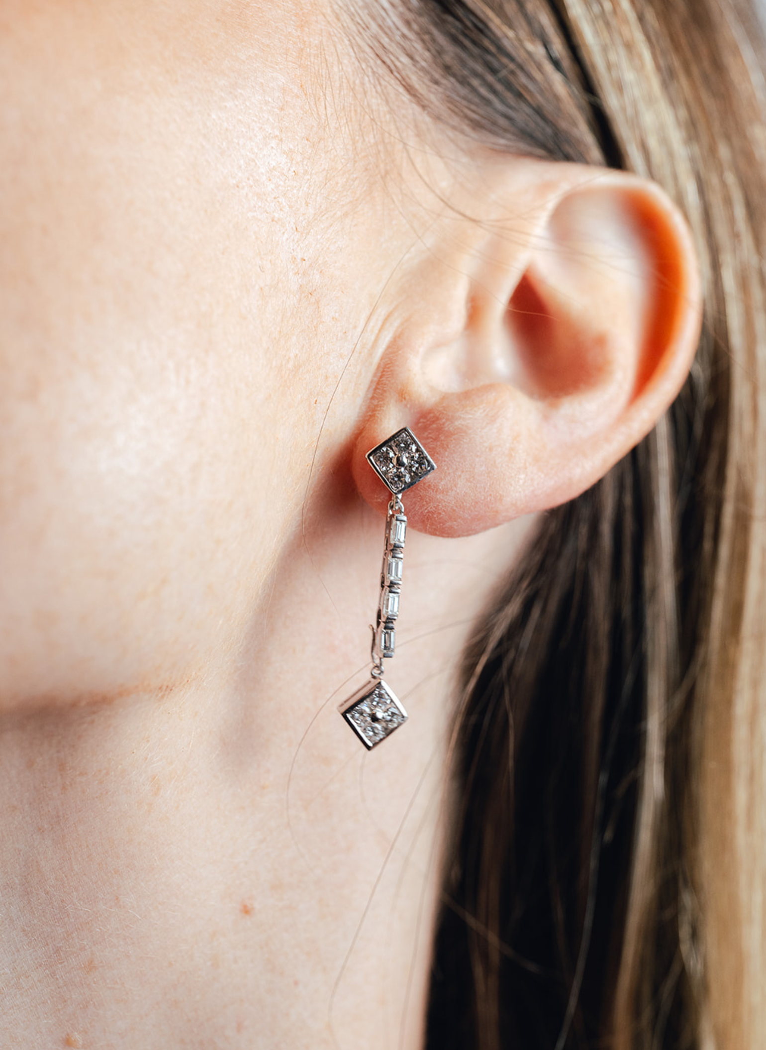 装饰艺术钻石耳环