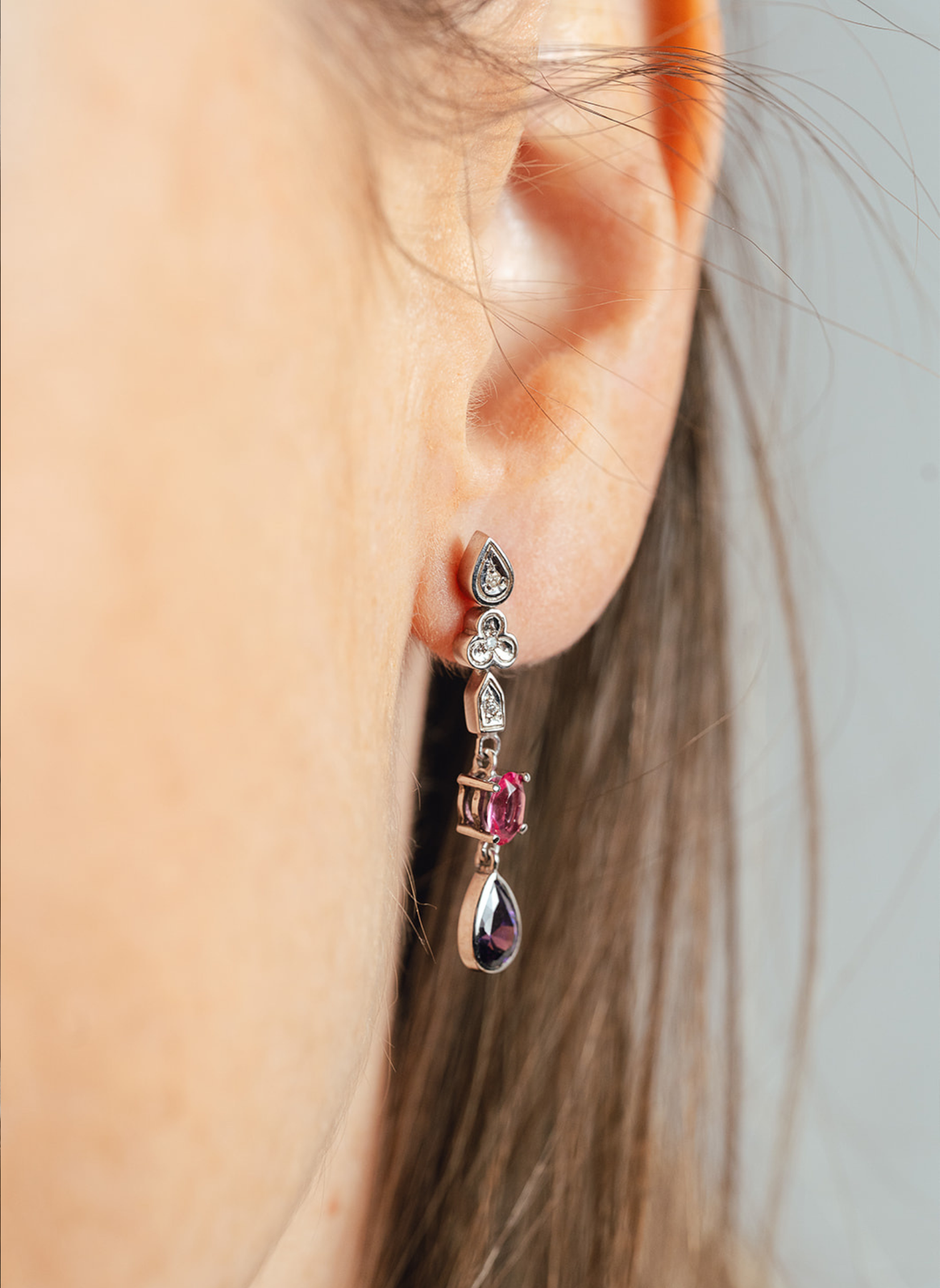 Le Gemme 玫瑰金石英耳环