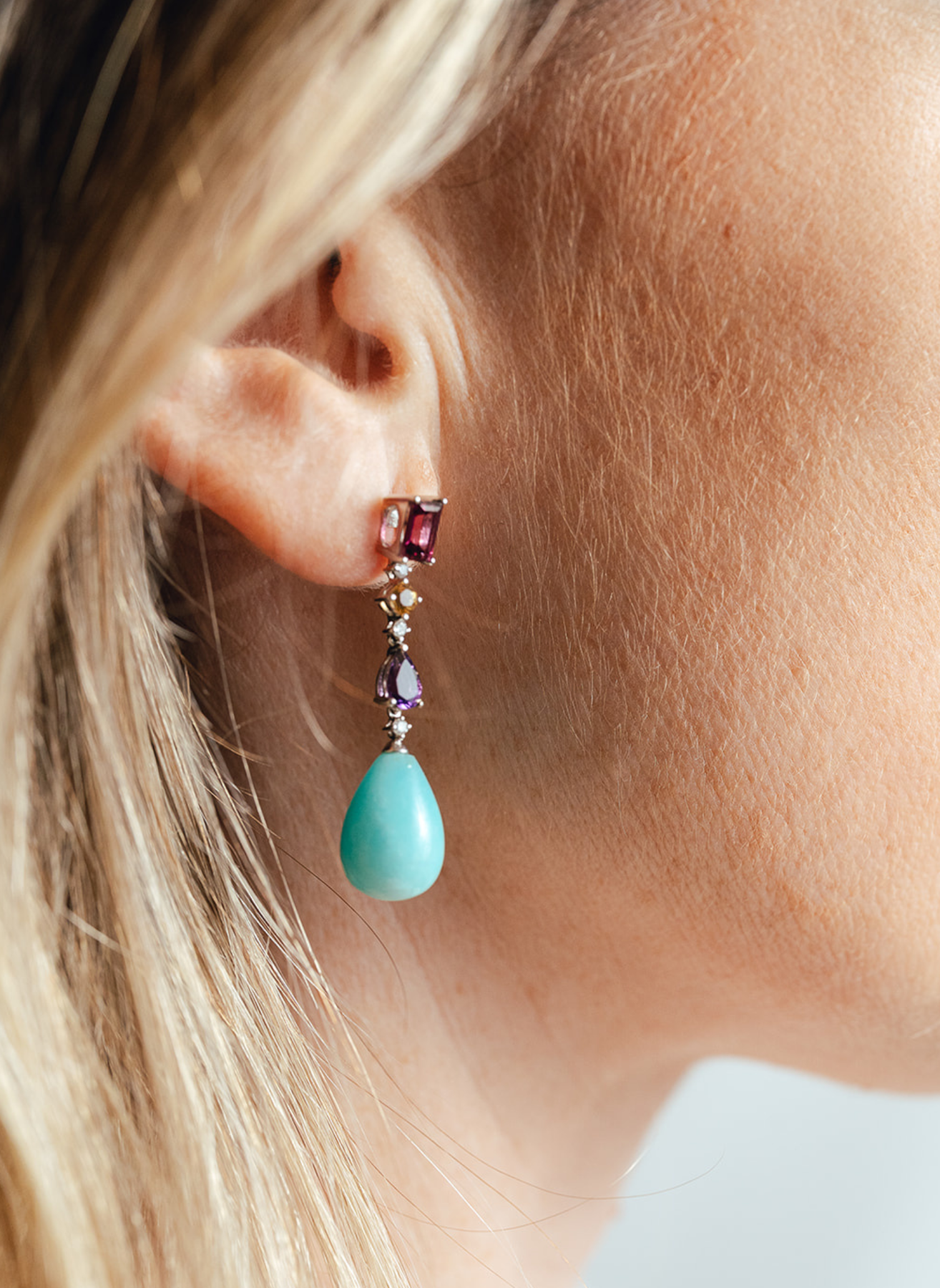 Amalfitana 系列的灵感源自美妙的意大利阿马尔菲海岸及其色彩。宝石和颜色的组合创造了梦幻般的组合。独特的作品将为您带来一丝光线和色彩,带您前往美丽的阿马尔菲海岸、它的角落和秘密。